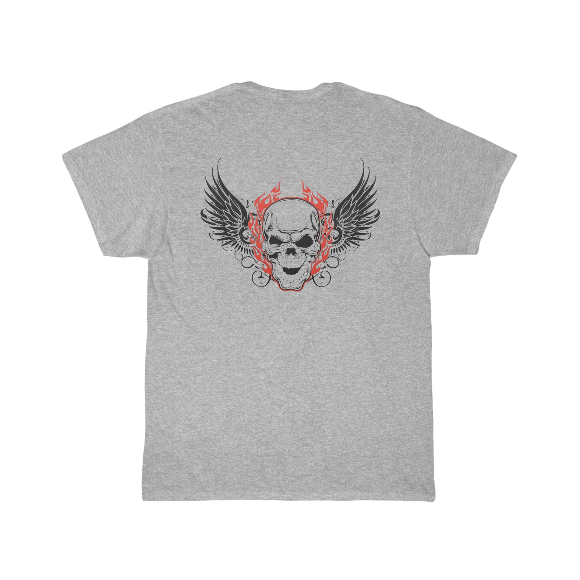 #UniqueStyle #CasualWear #CustomTees #EffortlessFashion #StatementShirt #ComfortIsKing #PersonalizeIt #FashionTemplate #TeeTime #InfernalWingsTee #SkullAndFlames #DarkElegance #FieryFashion #BoldTShirts #WingedSkull #FashionFlame