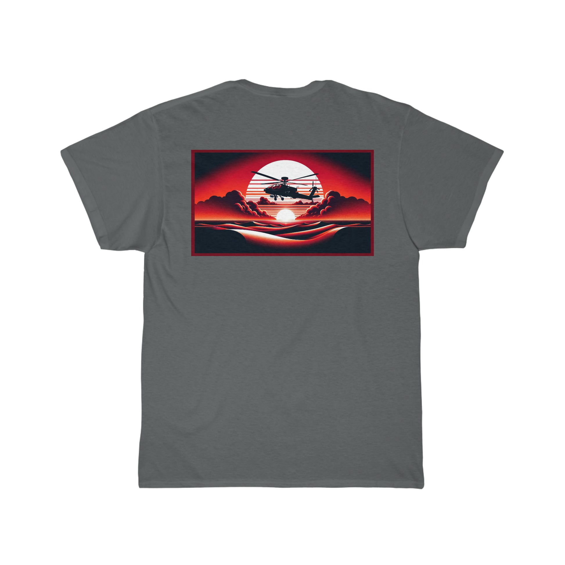 Wrap yourself in the colors of valor with the "Crimson Flight" Sunset Helicopter T-Shirt, and carry the spirit of the sunset warriors wherever you go.