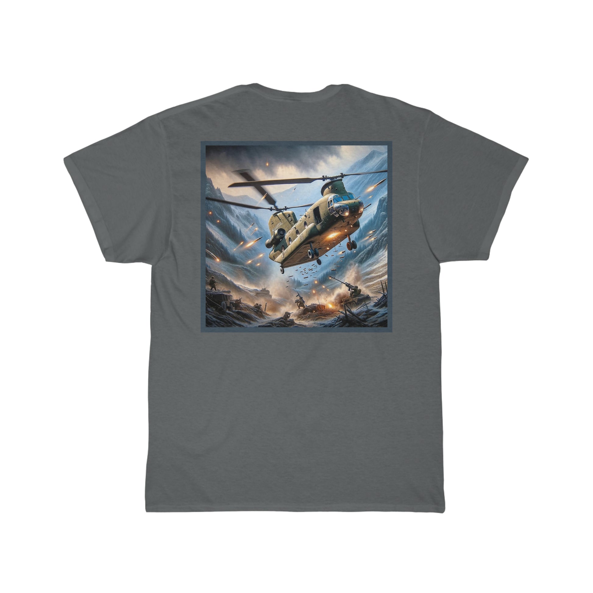 This t-shirt captures the essence of the battlefield with its realistic depiction of a mountainous warzone, where every peak and valley becomes part of the tactical landscape. It's a tribute to the unfailing spirit of those who serve, a wearable testament to their sacrifices and unyielding bravery.