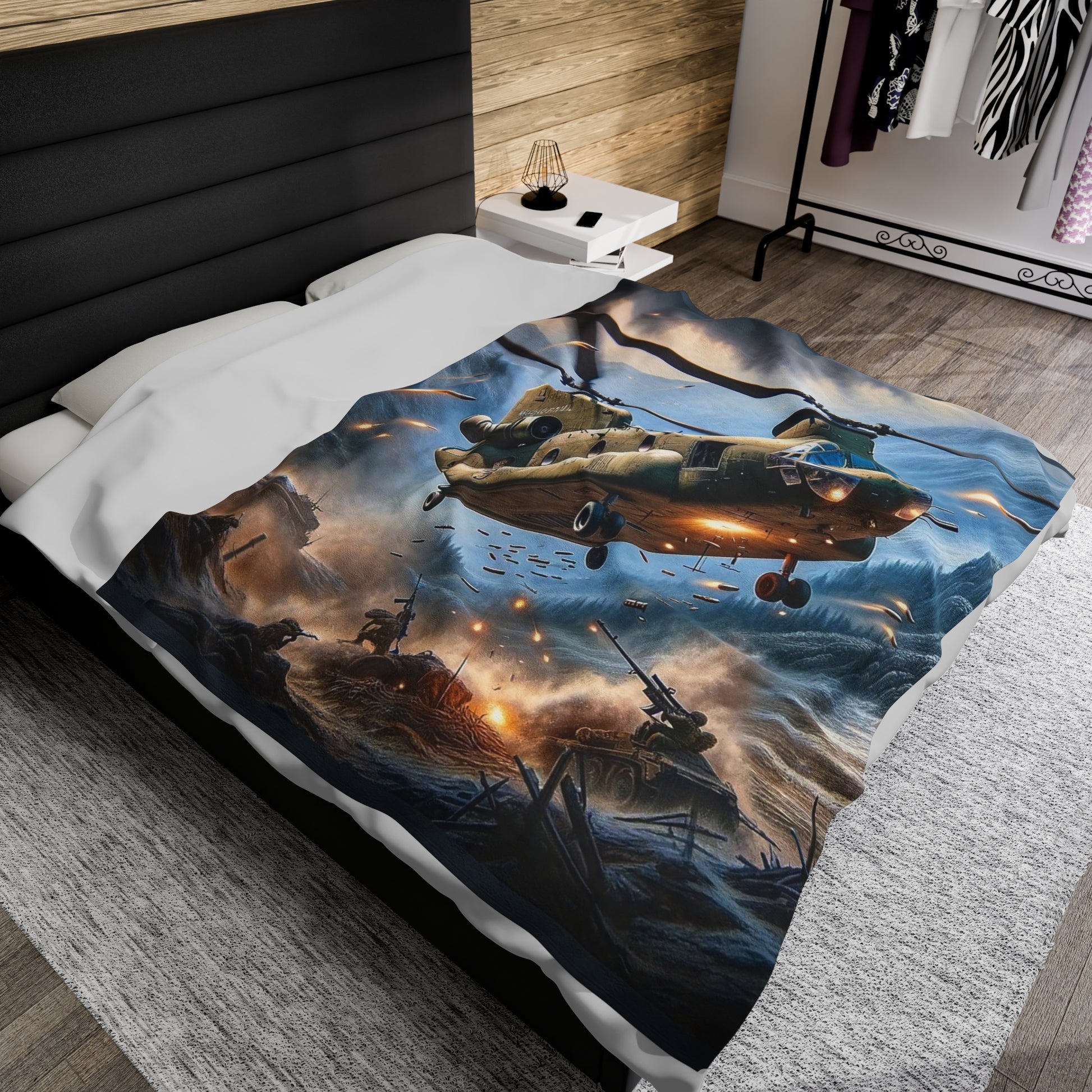Embrace the thrill of the skies with our "Battle Climb" Velveteen Plush Blanket, where the might of military marvels meets the pinnacle of plush comfort. 🚁💥