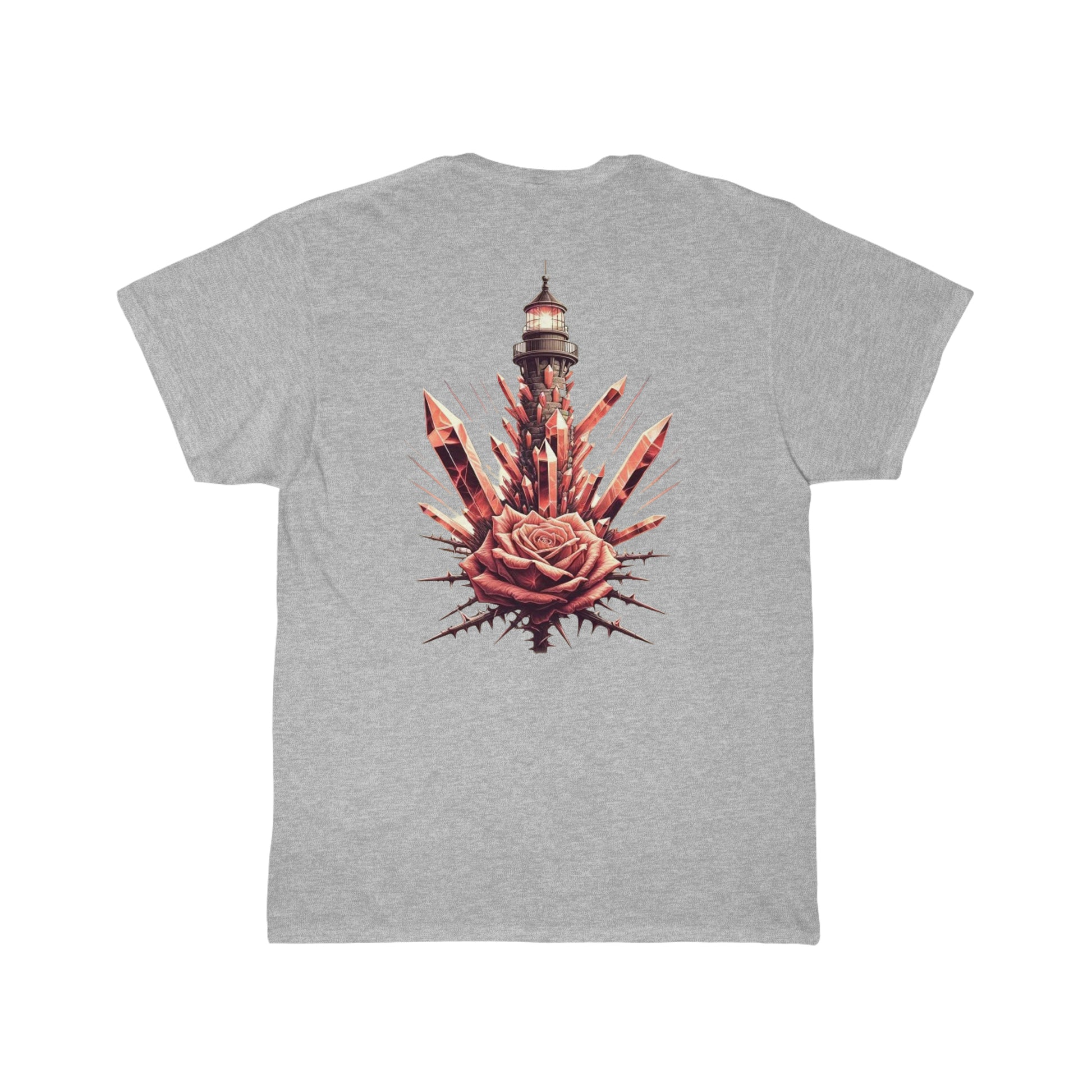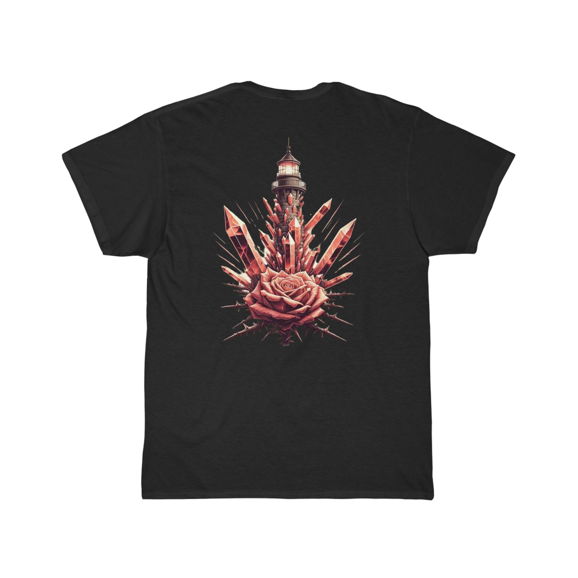 Our "Crystal Lighthouse" T-shirt is more than just apparel; it's a wearable piece of art that invites onlookers to dream, to wonder, and to believe in the magic that surrounds us. Crafted from soft, breathable fabric, this tee is designed for comfort, allowing you to embark on your day's journey with ease and style.
