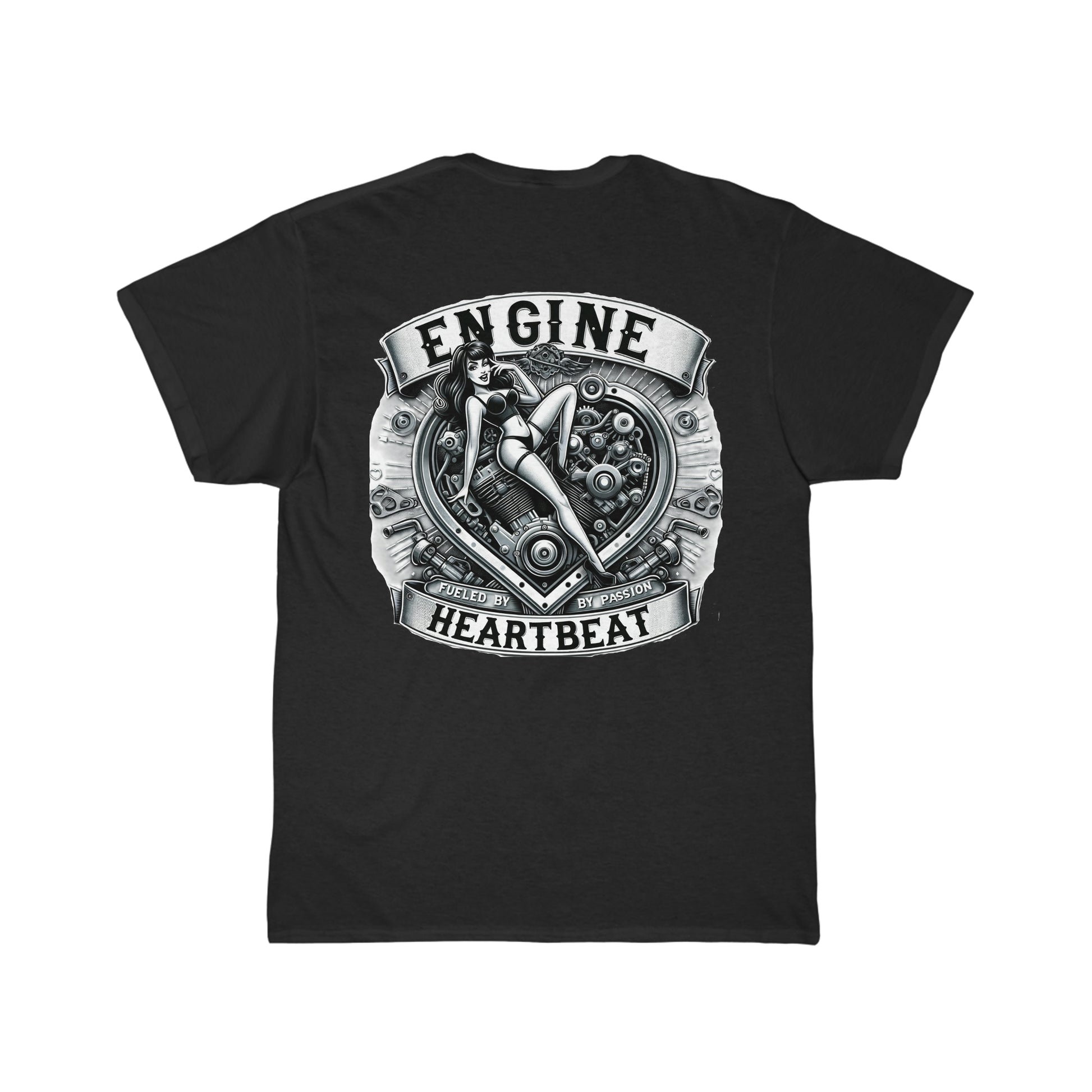 Ignite your wardrobe with the "Engine Heartbeat" t-shirt and let the world know: it's not just lust, it's high-octane love.