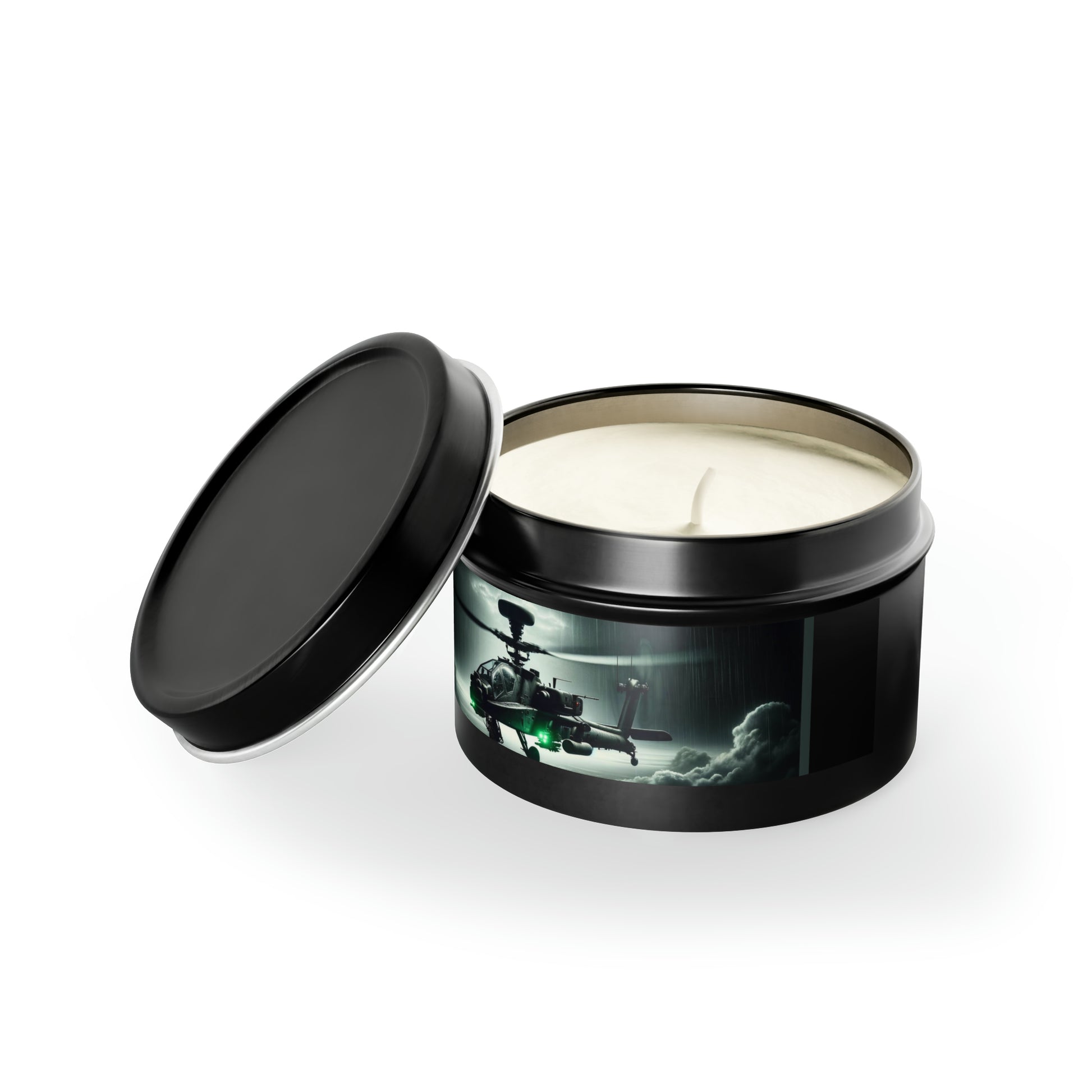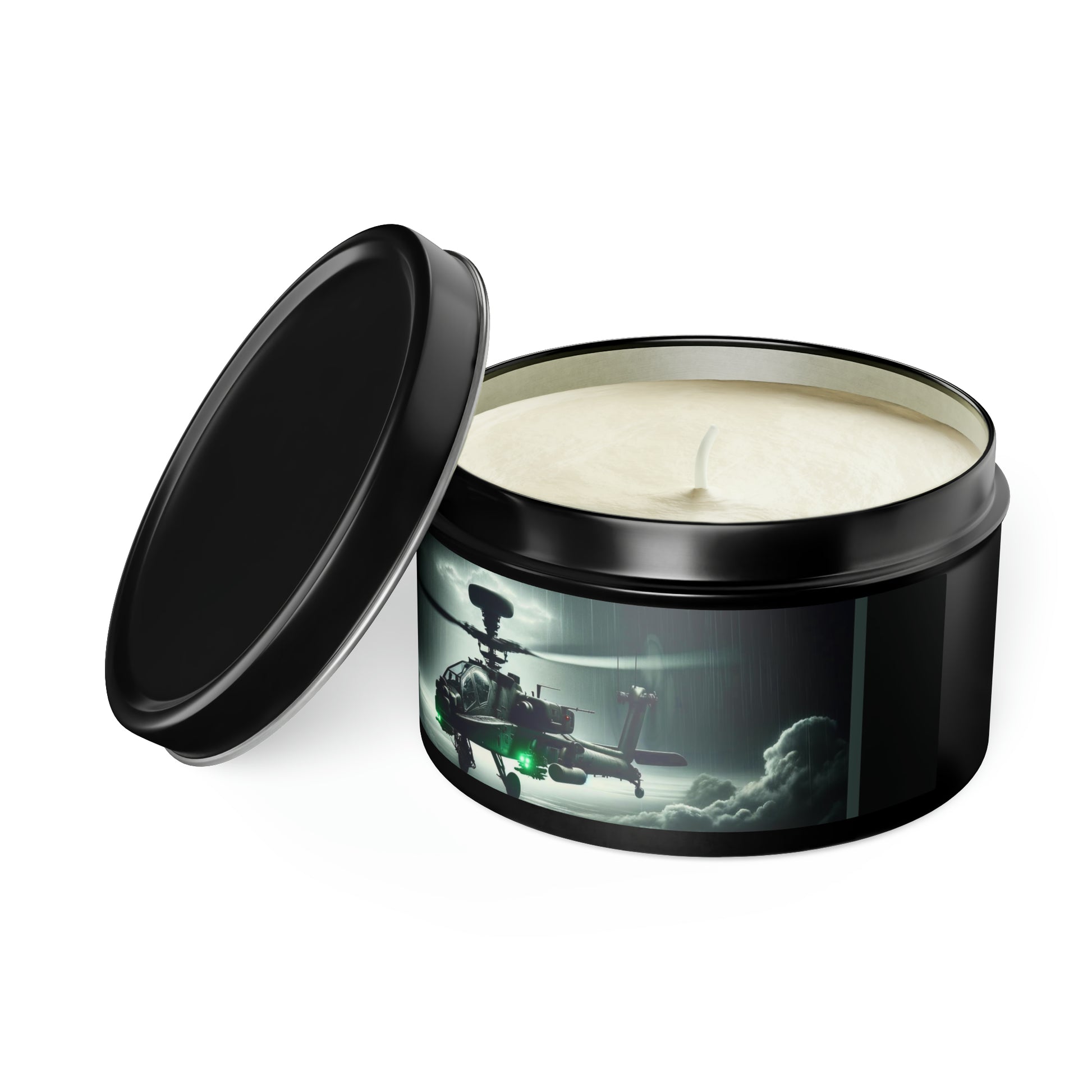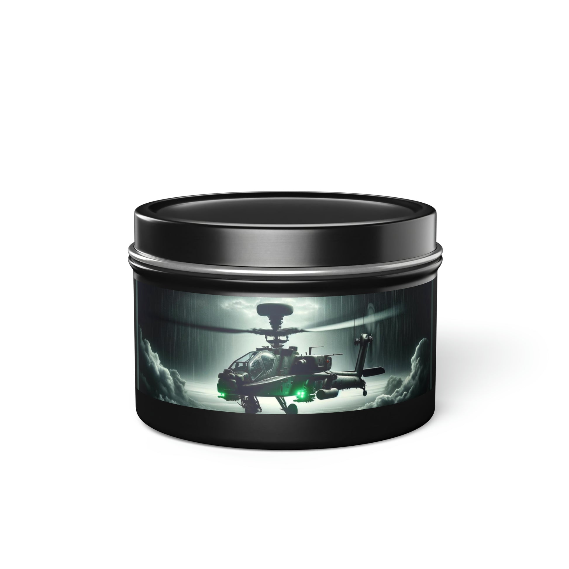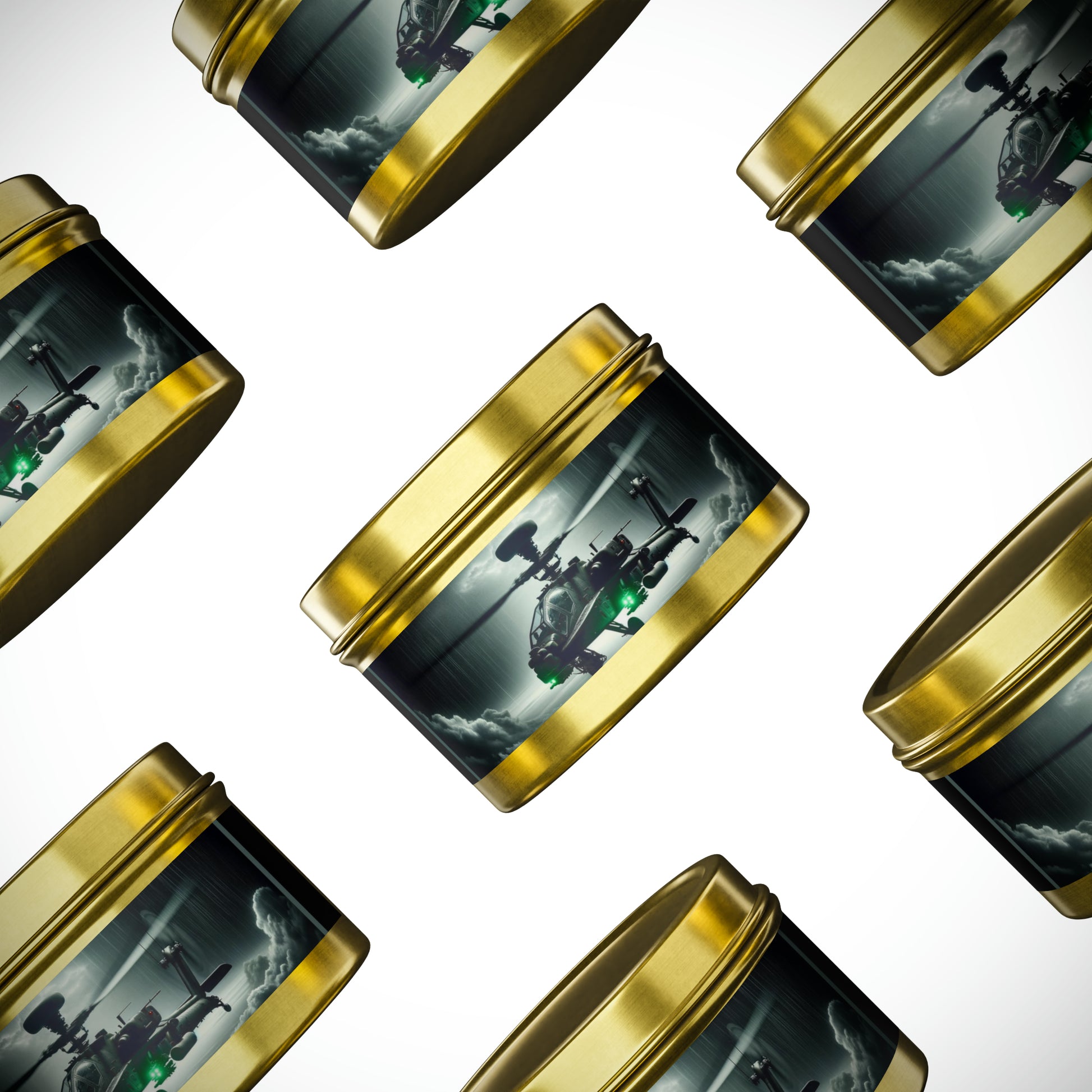 Illuminate your space with the essence of adventure - introducing our "Night Ops" Tin Candle 🕯️✨🚁! This isn't just any candle; it's a sensory journey into the heart of the night, where the brave dare to tread. Centered with a striking military helicopter design amidst clouds and a serene rain, painted in stealthy shades of black and green, this piece is a tribute to the silent, unseen heroes of the night.
