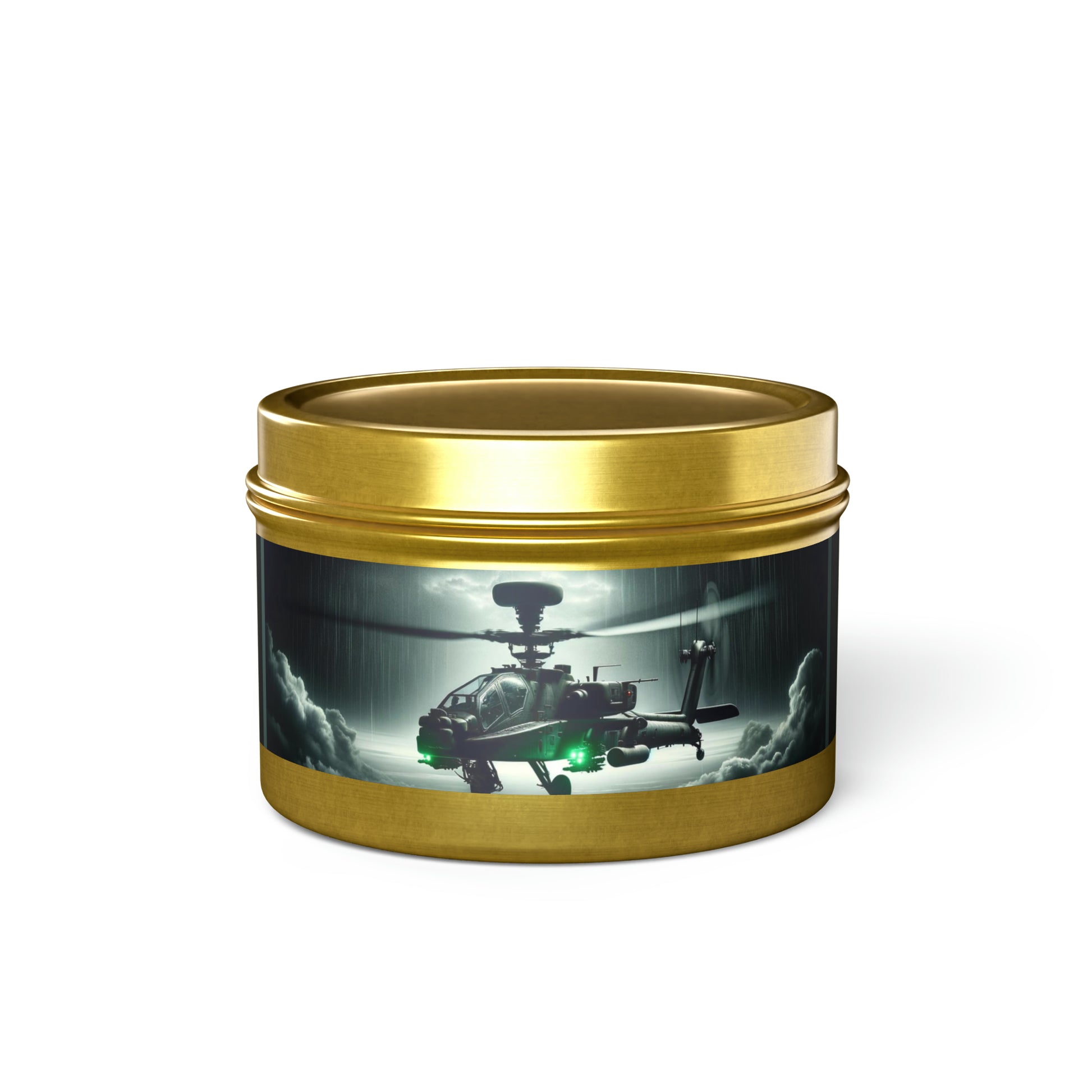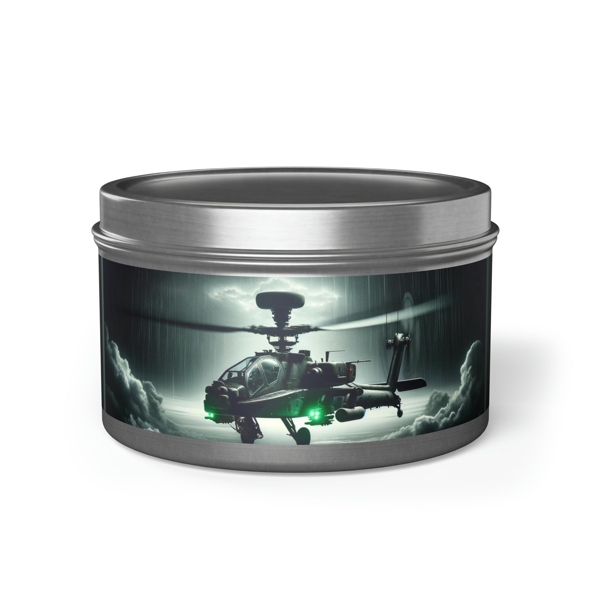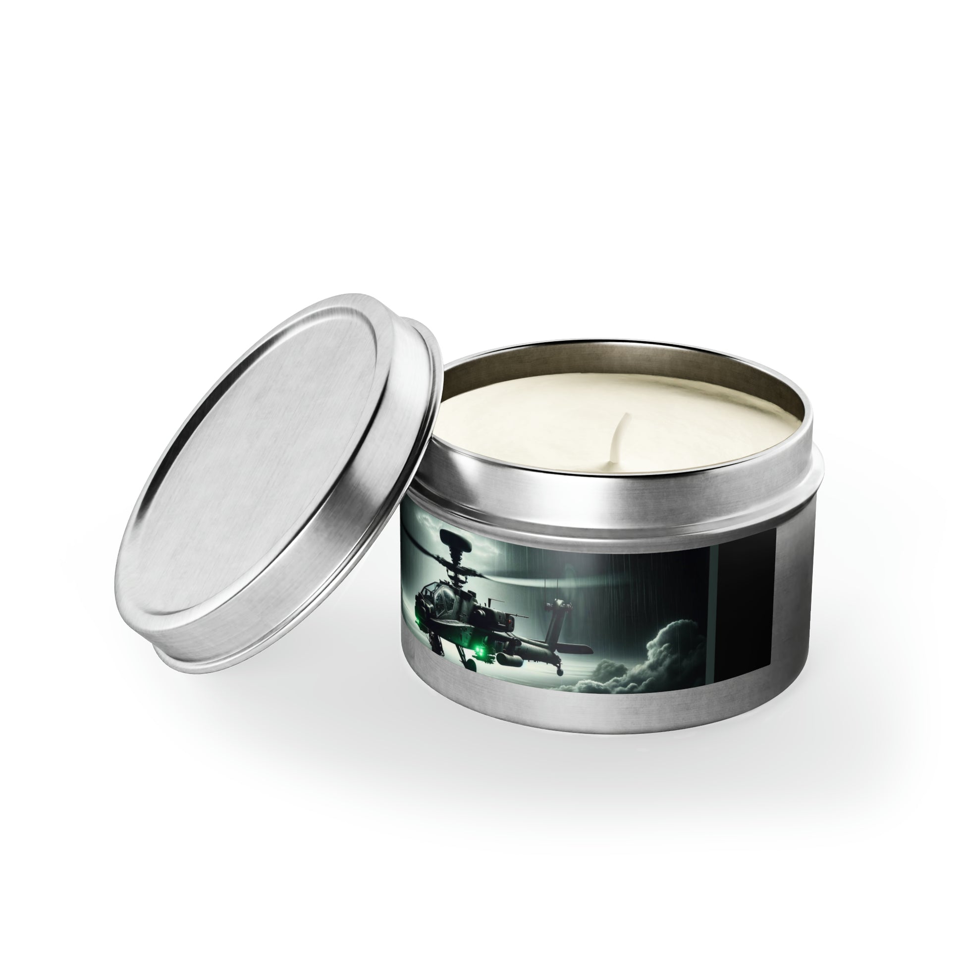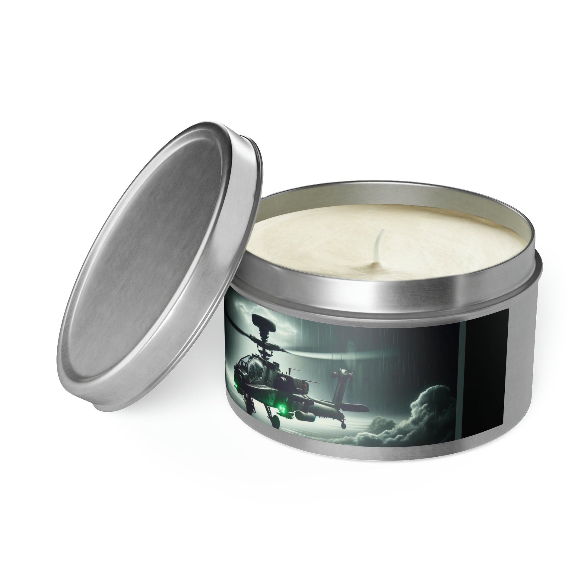 Illuminate your space with the essence of adventure - introducing our "Night Ops" Tin Candle 🕯️✨🚁! This isn't just any candle; it's a sensory journey into the heart of the night, where the brave dare to tread. Centered with a striking military helicopter design amidst clouds and a serene rain, painted in stealthy shades of black and green, this piece is a tribute to the silent, unseen heroes of the night.