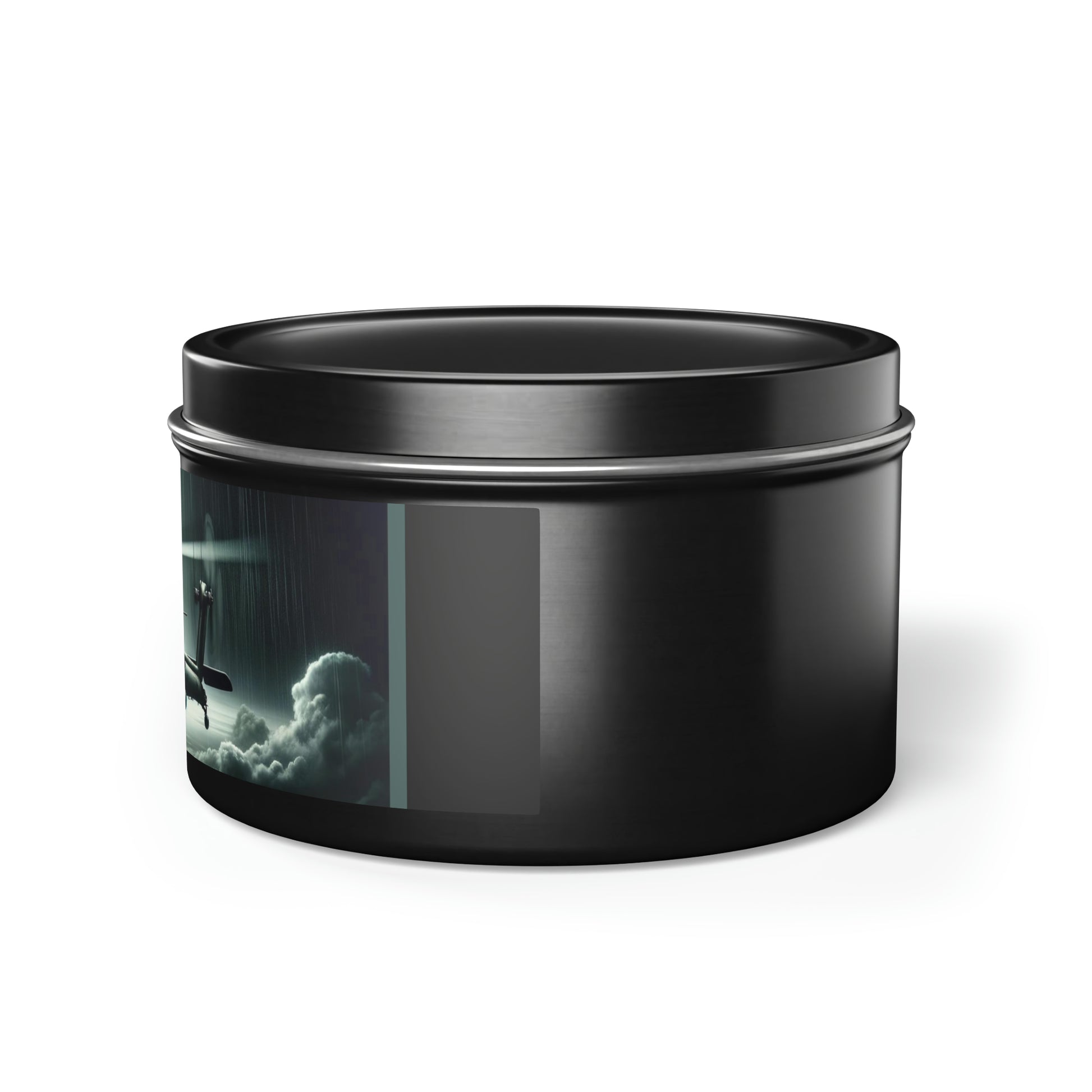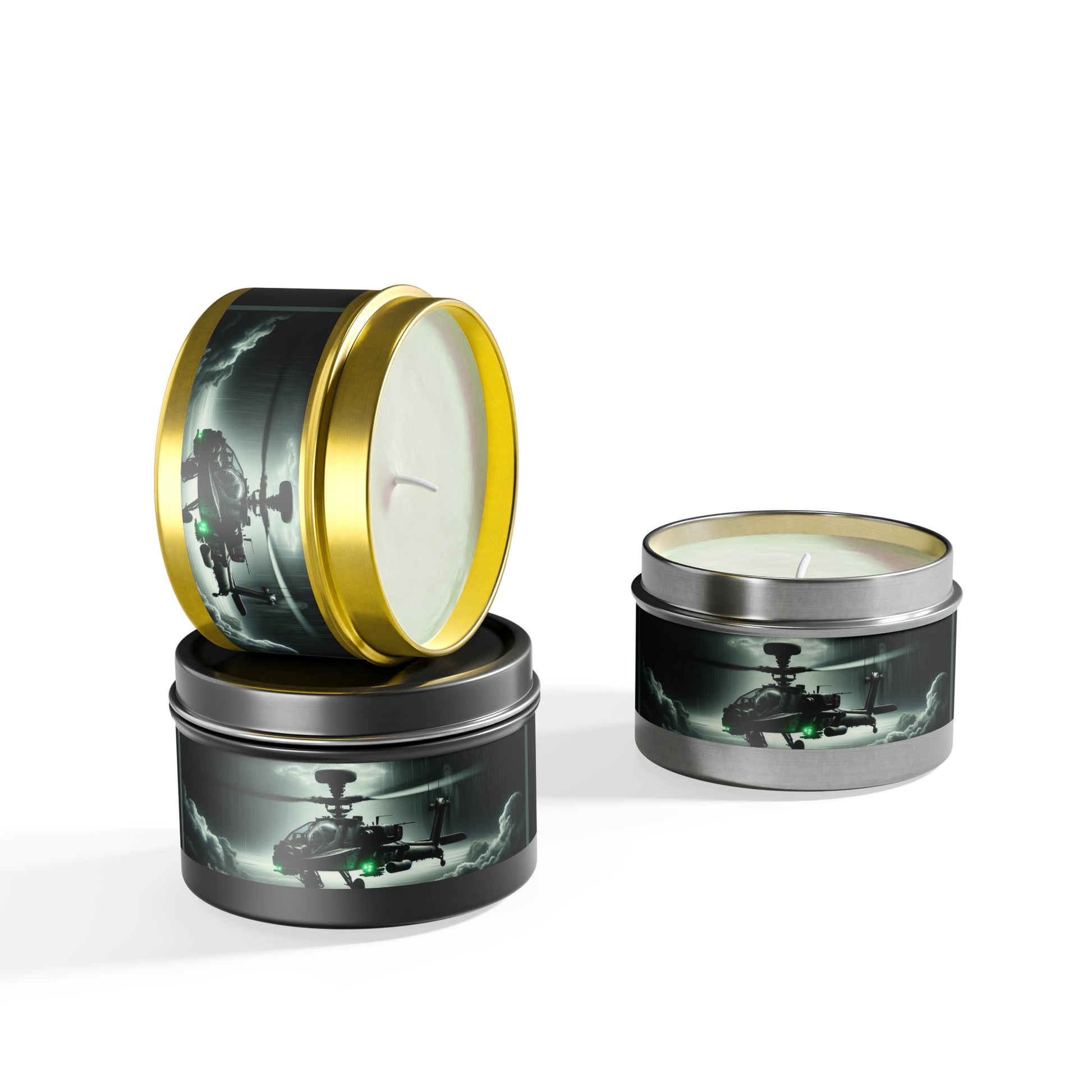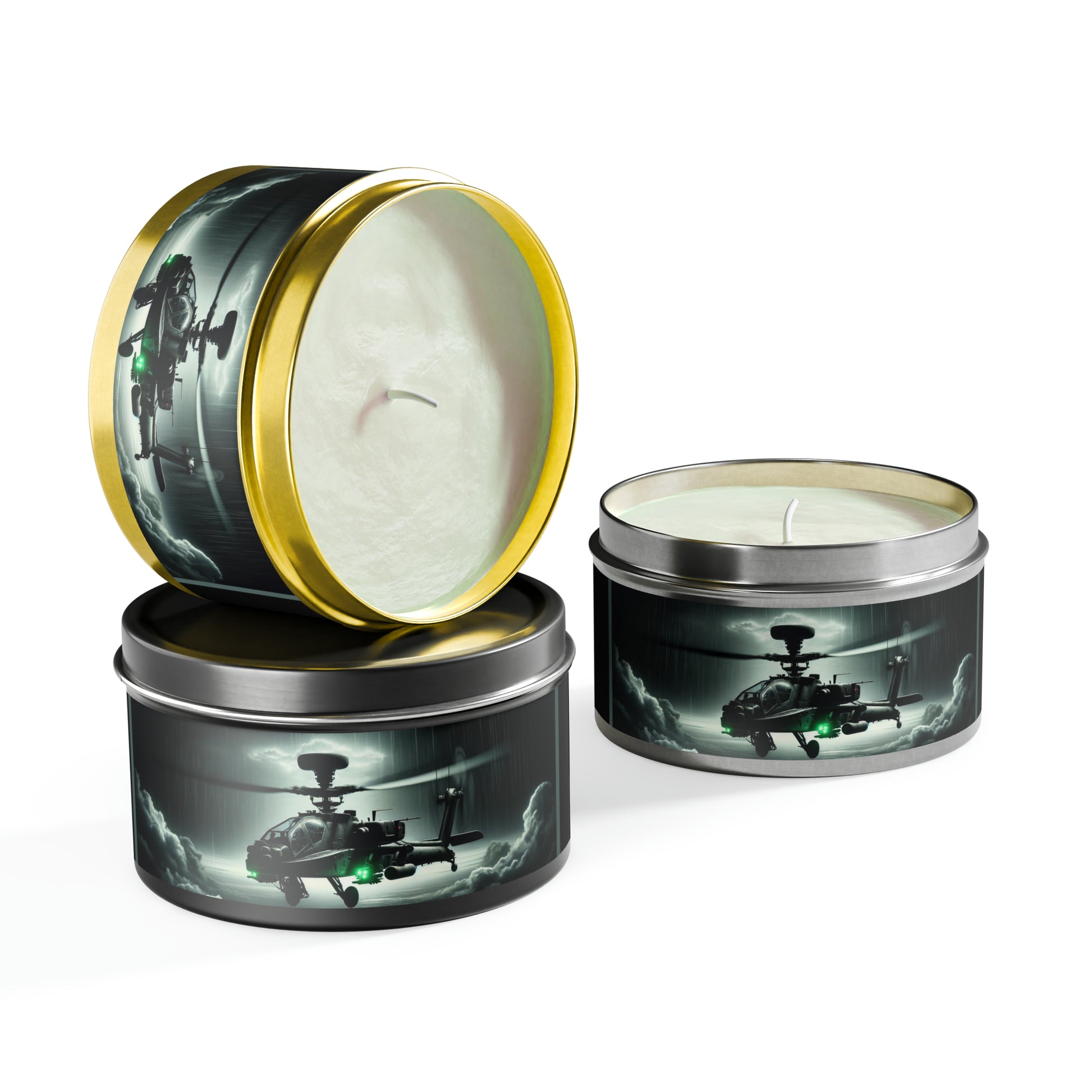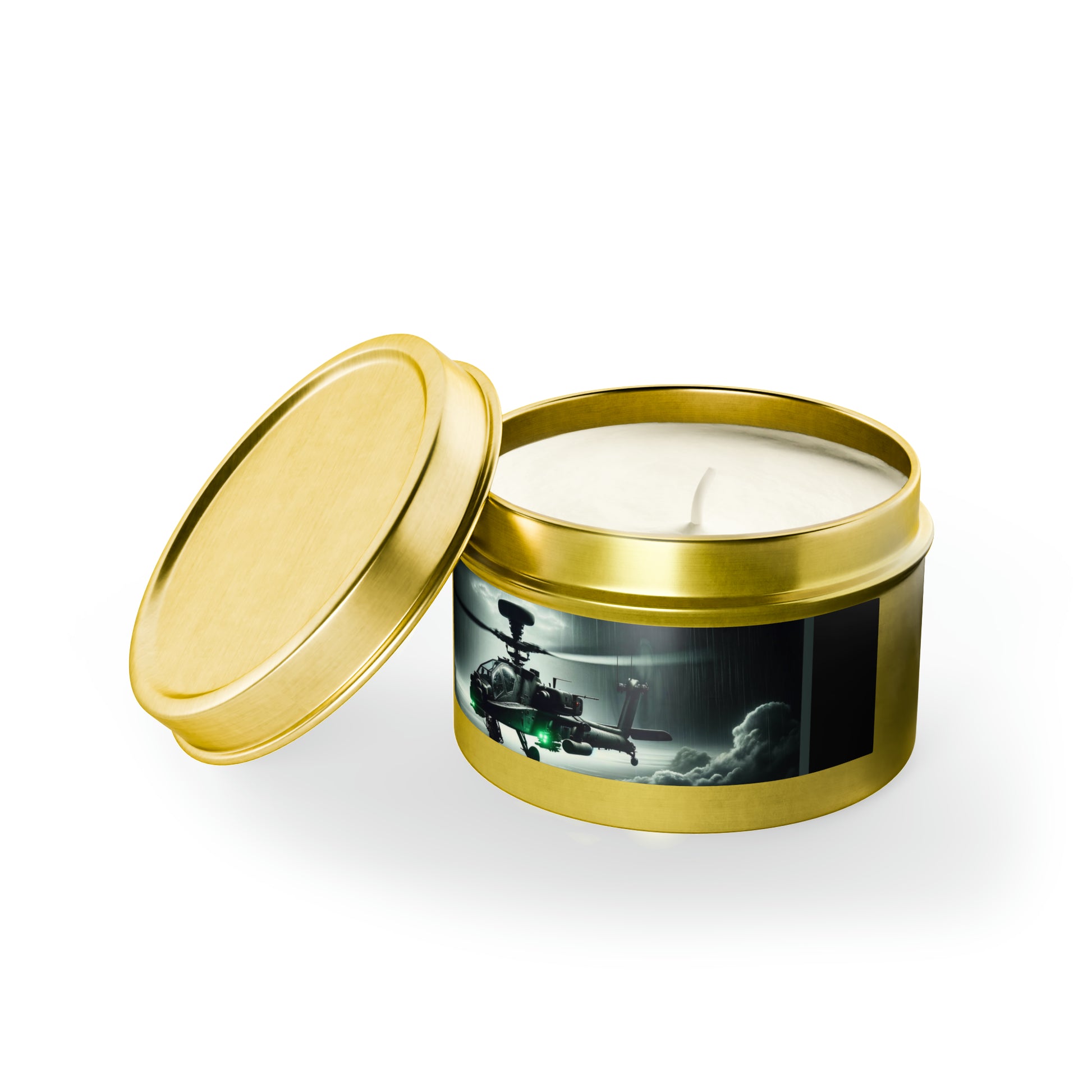 Illuminate your space with the essence of adventure - introducing our "Night Ops" Tin Candle 🕯️✨🚁! This isn't just any candle; it's a sensory journey into the heart of the night, where the brave dare to tread. Centered with a striking military helicopter design amidst clouds and a serene rain, painted in stealthy shades of black and green, this piece is a tribute to the silent, unseen heroes of the night.