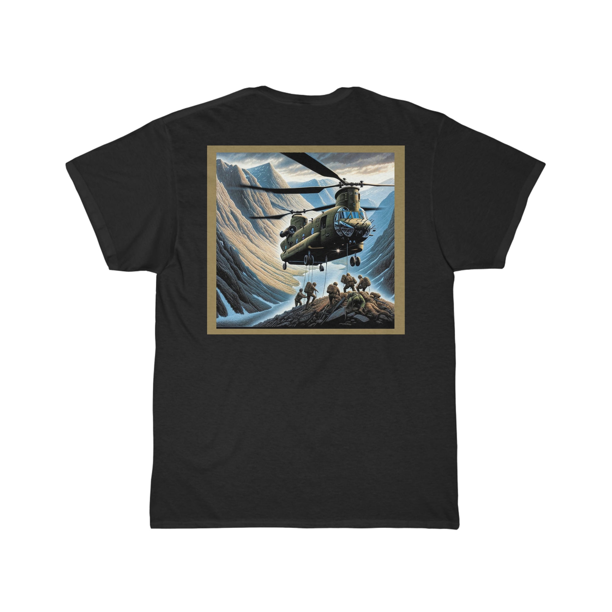 This description aims to capture the adventurous and valorous feel of the t-shirt's design, appealing to outdoor enthusiasts, military supporters, and those who appreciate a graphic tee with a compelling narrative.
