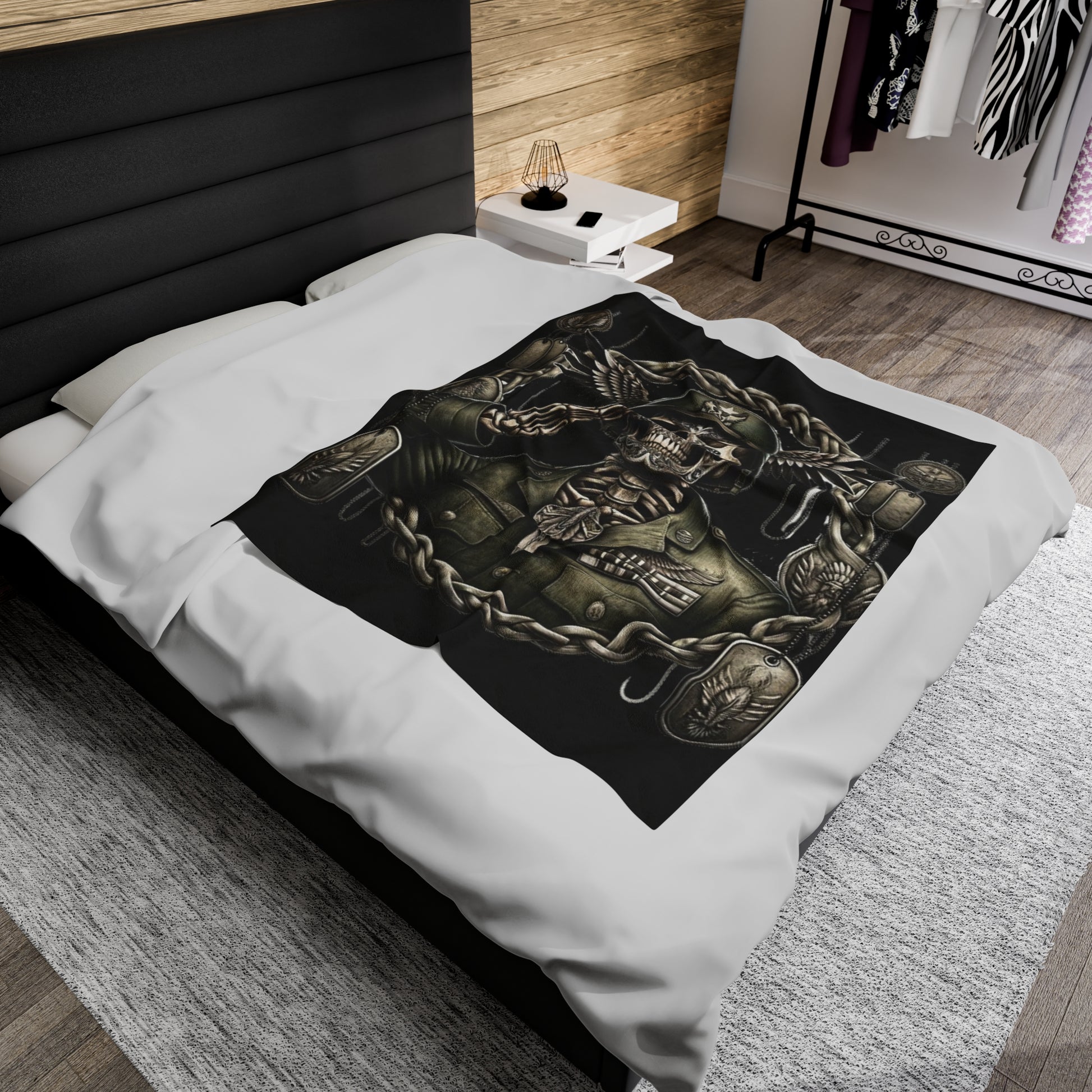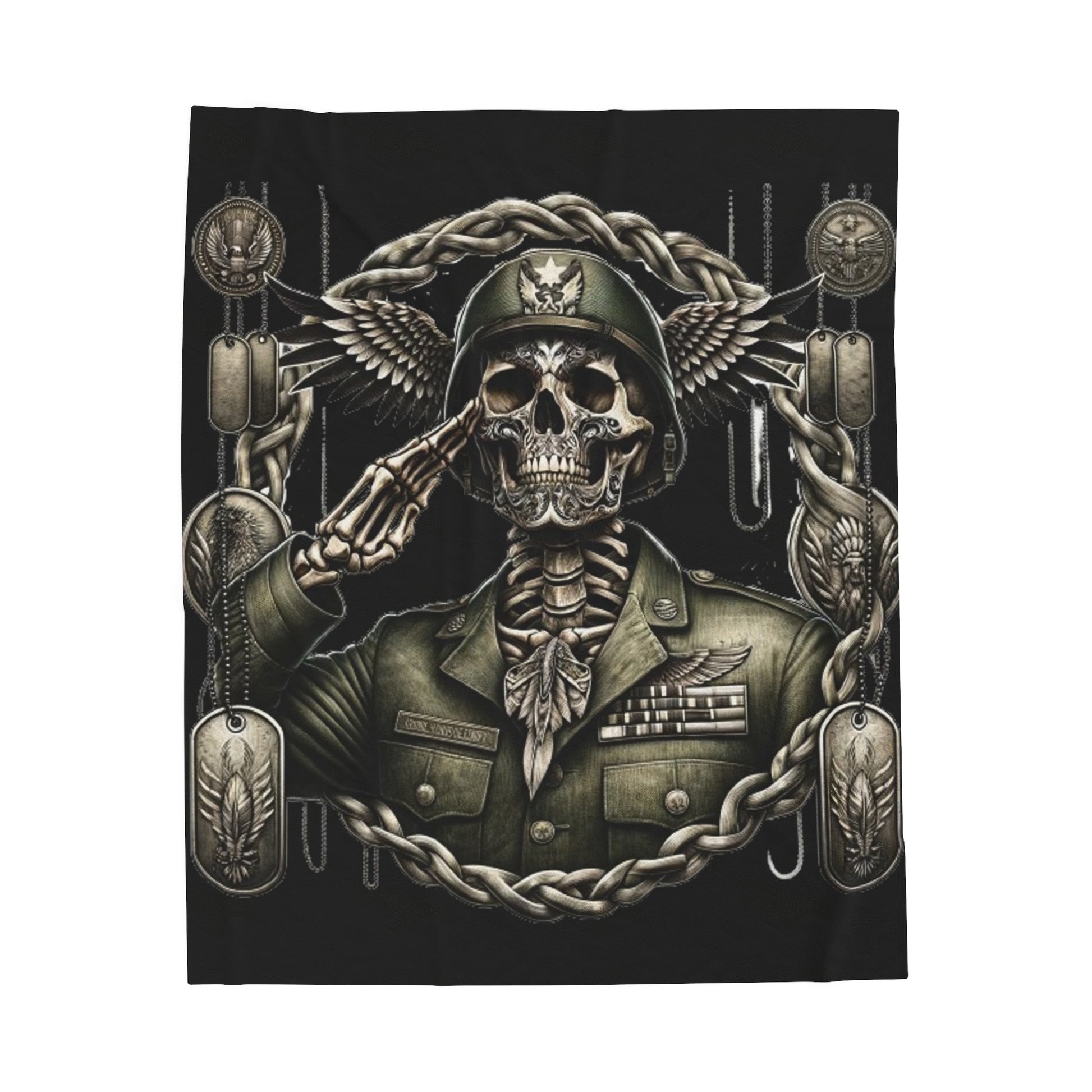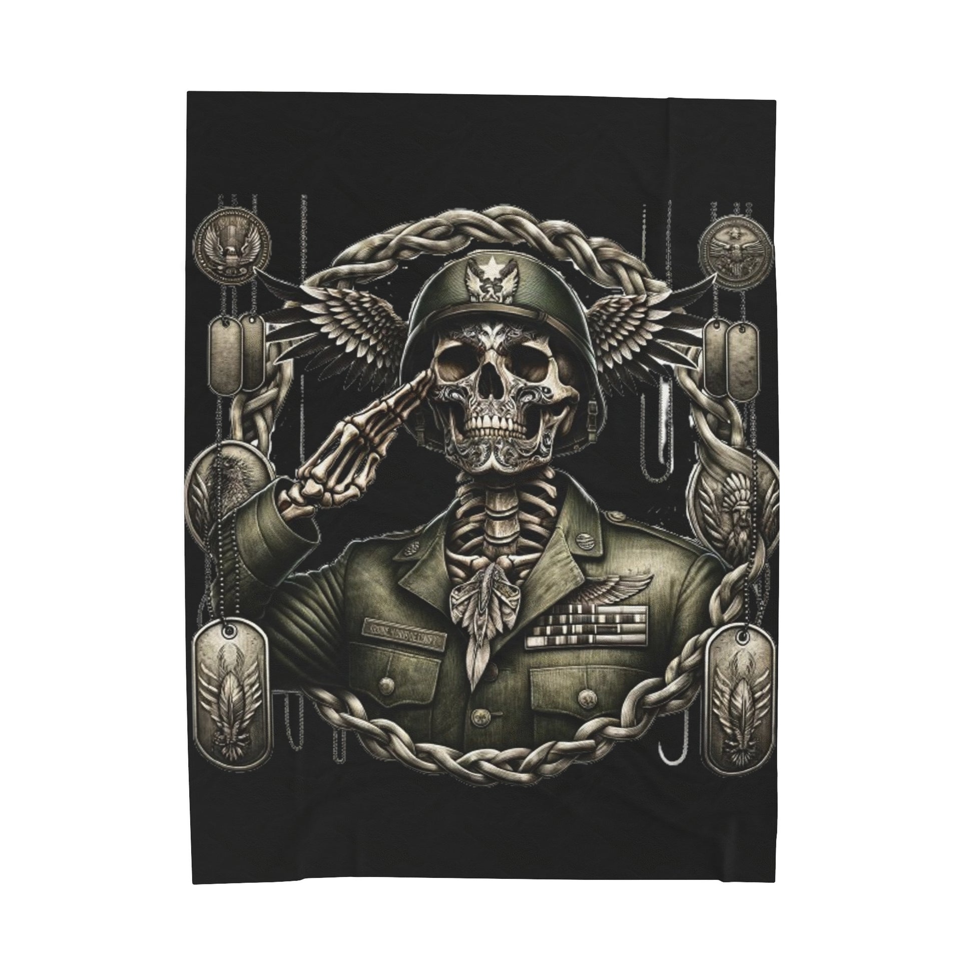 Crafted from the softest velveteen, this blanket wraps you in luxury, offering a tactile connection to the legacy of the brave. Available in sizes to fit your needs — 30x40 for personal reflection, 50x60 for shared honor, and 60x80 for a full embrace — each provides an ample canvas for the striking design.