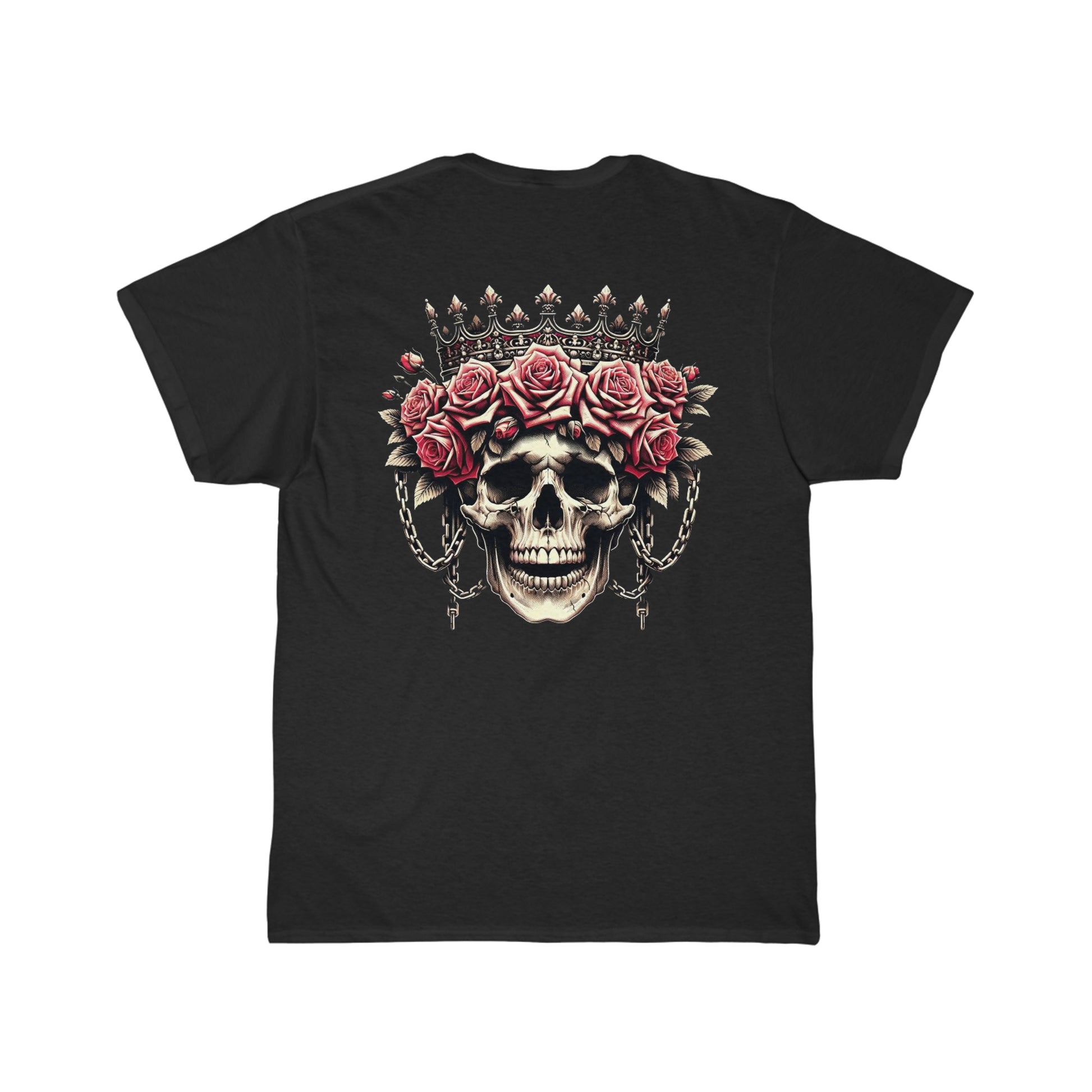 Wear it and walk with the confidence of a monarch, the grace of nature, and the boldness of a warrior. Let the Skull Crown & Flowers T-shirt be your banner. Because in the kingdom of the bold, you are the sovereign.