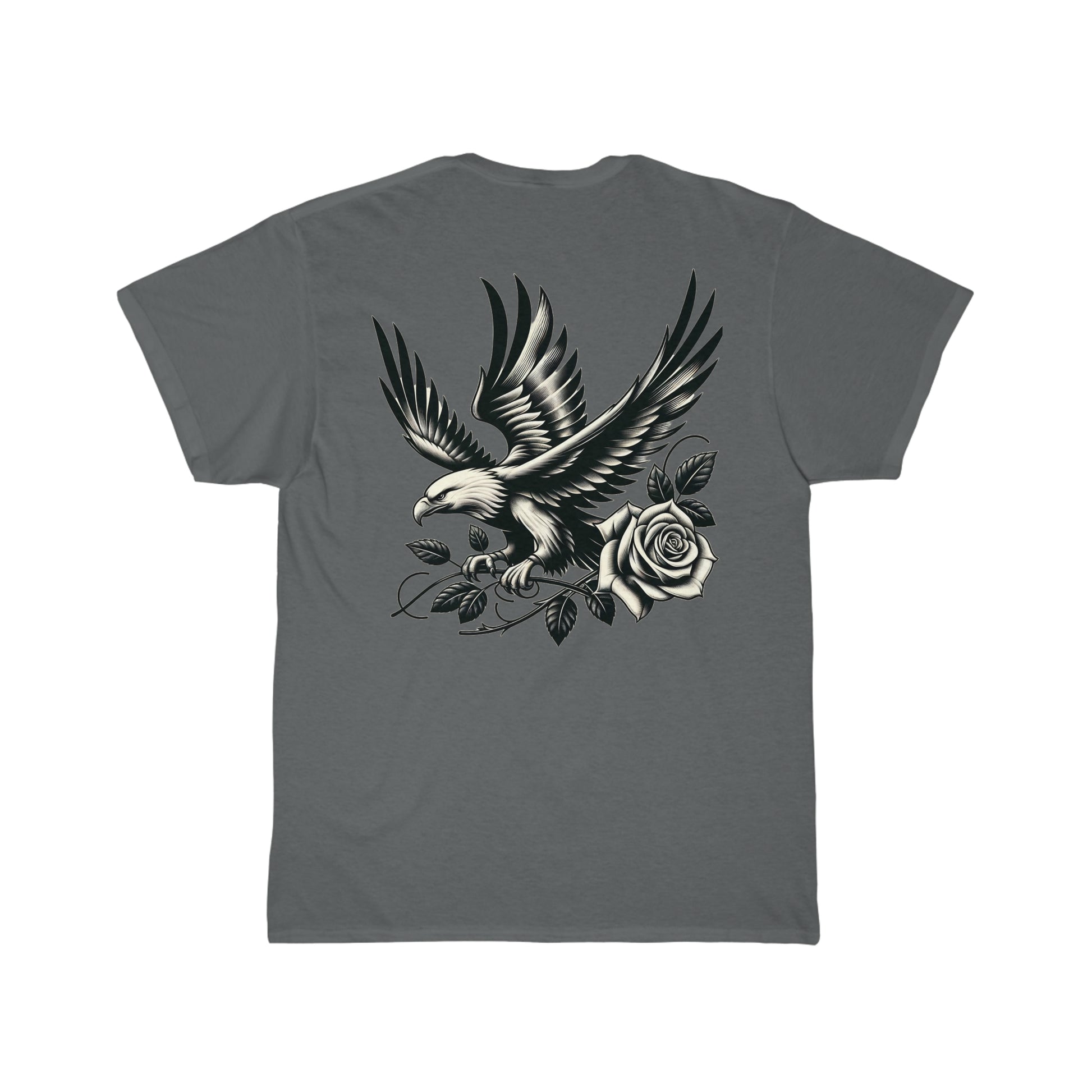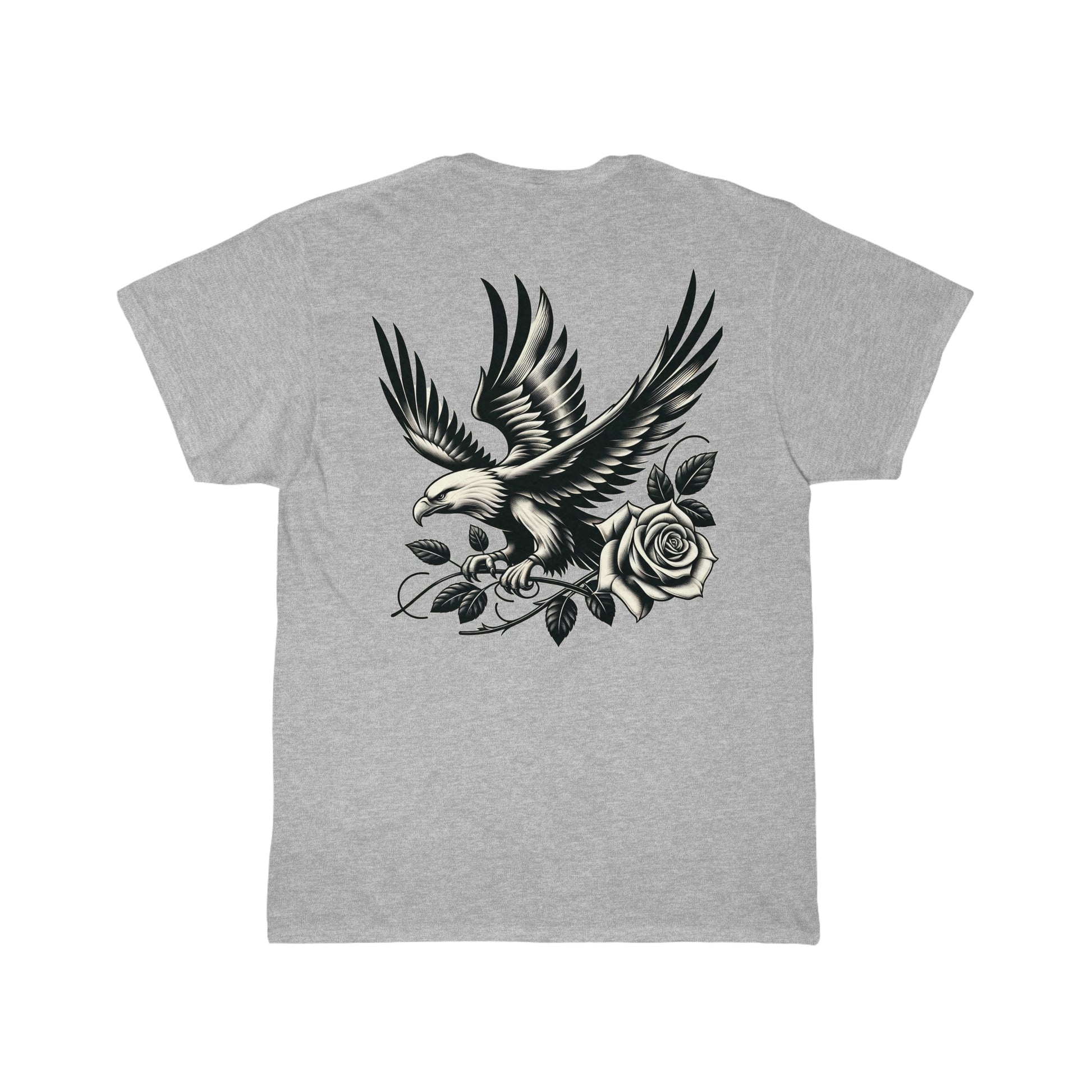 Introducing the "Soaring Romance" T-shirt, where freedom meets love in a majestic flight! 🦅💖 Picture this: an awe-inspiring eagle, wings outstretched, caught in the very essence of grace and power as it soars through the skies. But there's a twist - this isn't just any aerial journey!