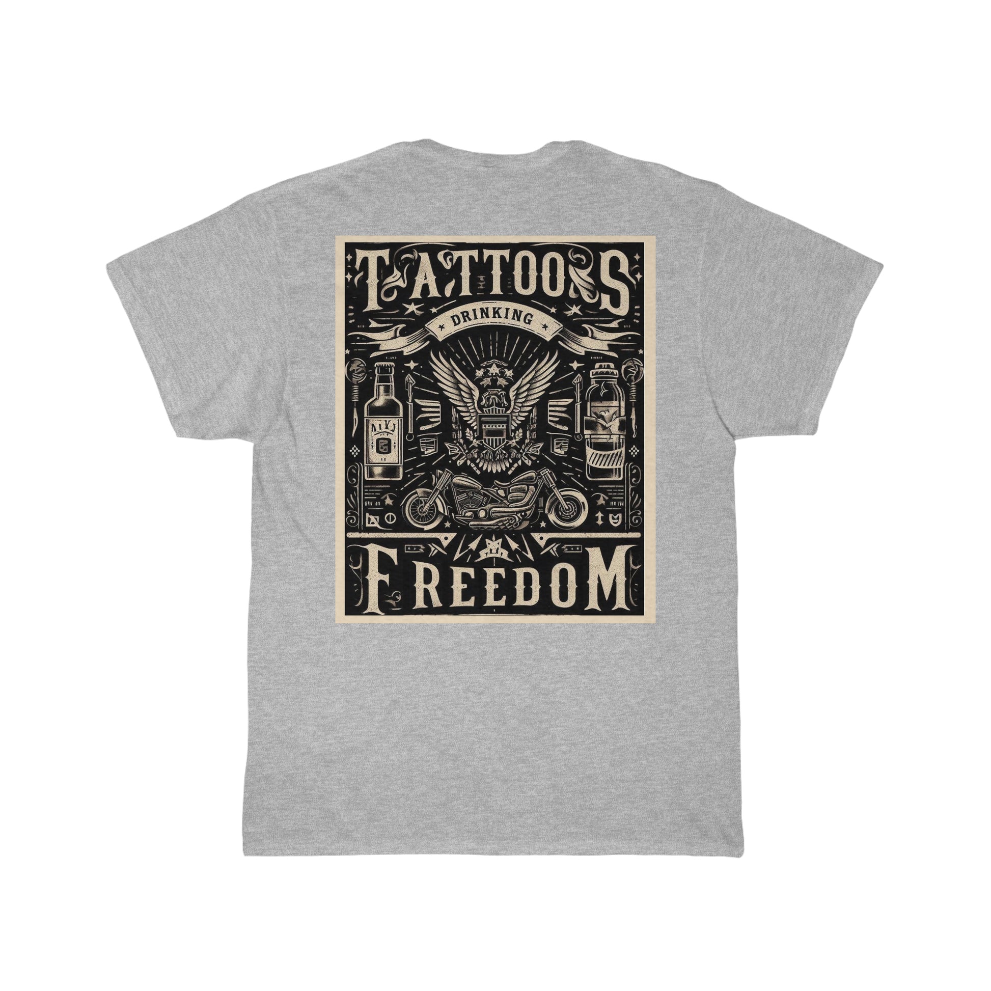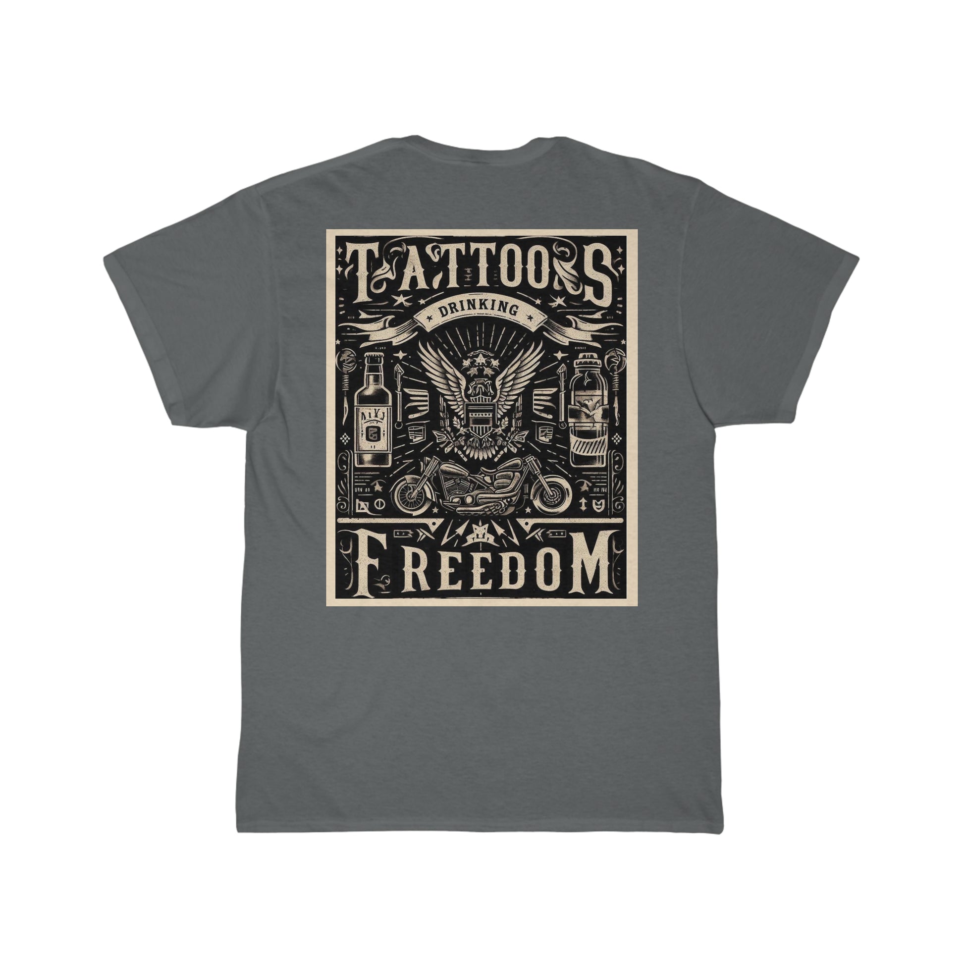 Crafted with quality materials and designed to stand the test of time, the "Tattoos & Freedom" Tee is your ticket to an identity that is unapologetically bold and authentically yours. Slip this shirt on, kickstart your day, and ride towards the horizon where freedom and adventure await.