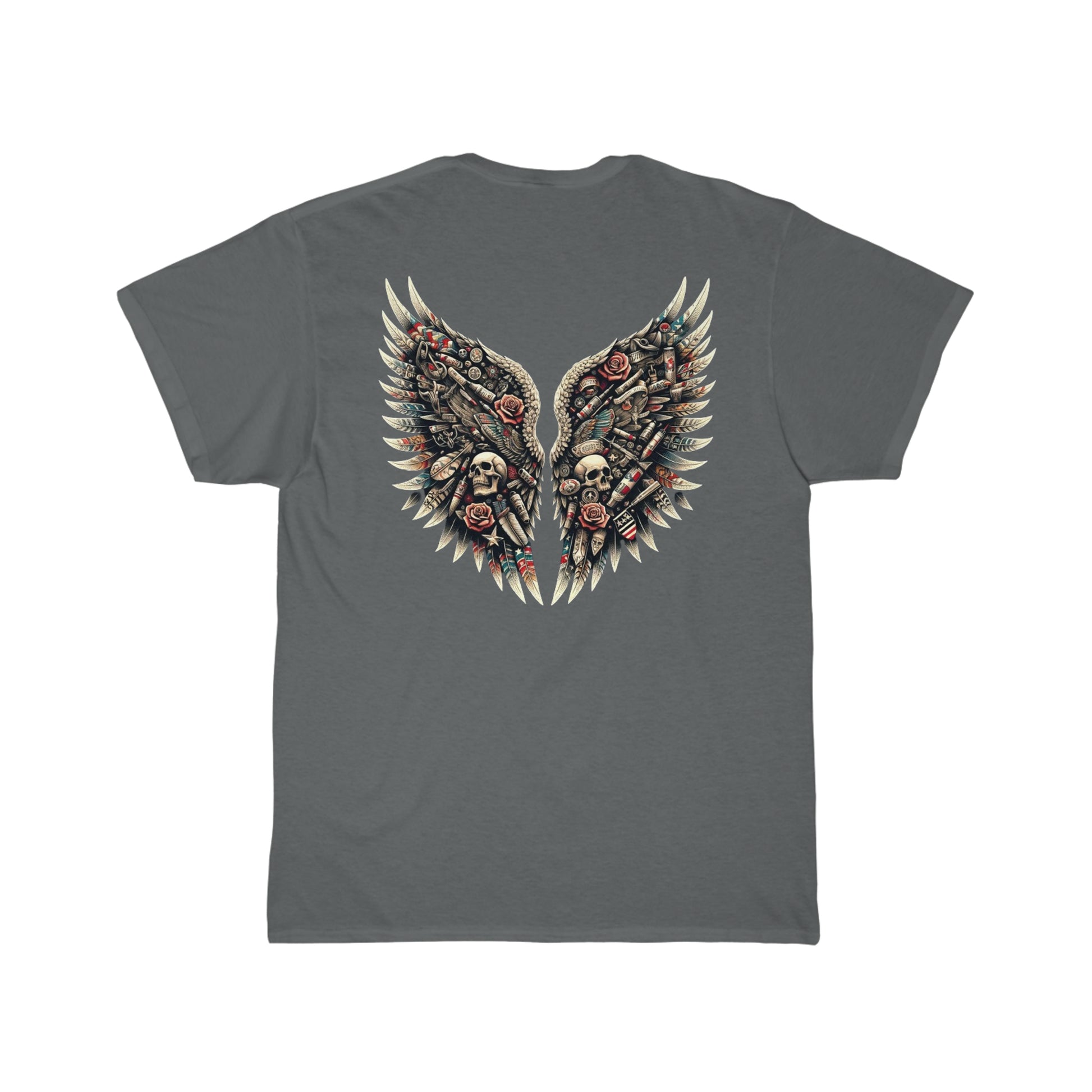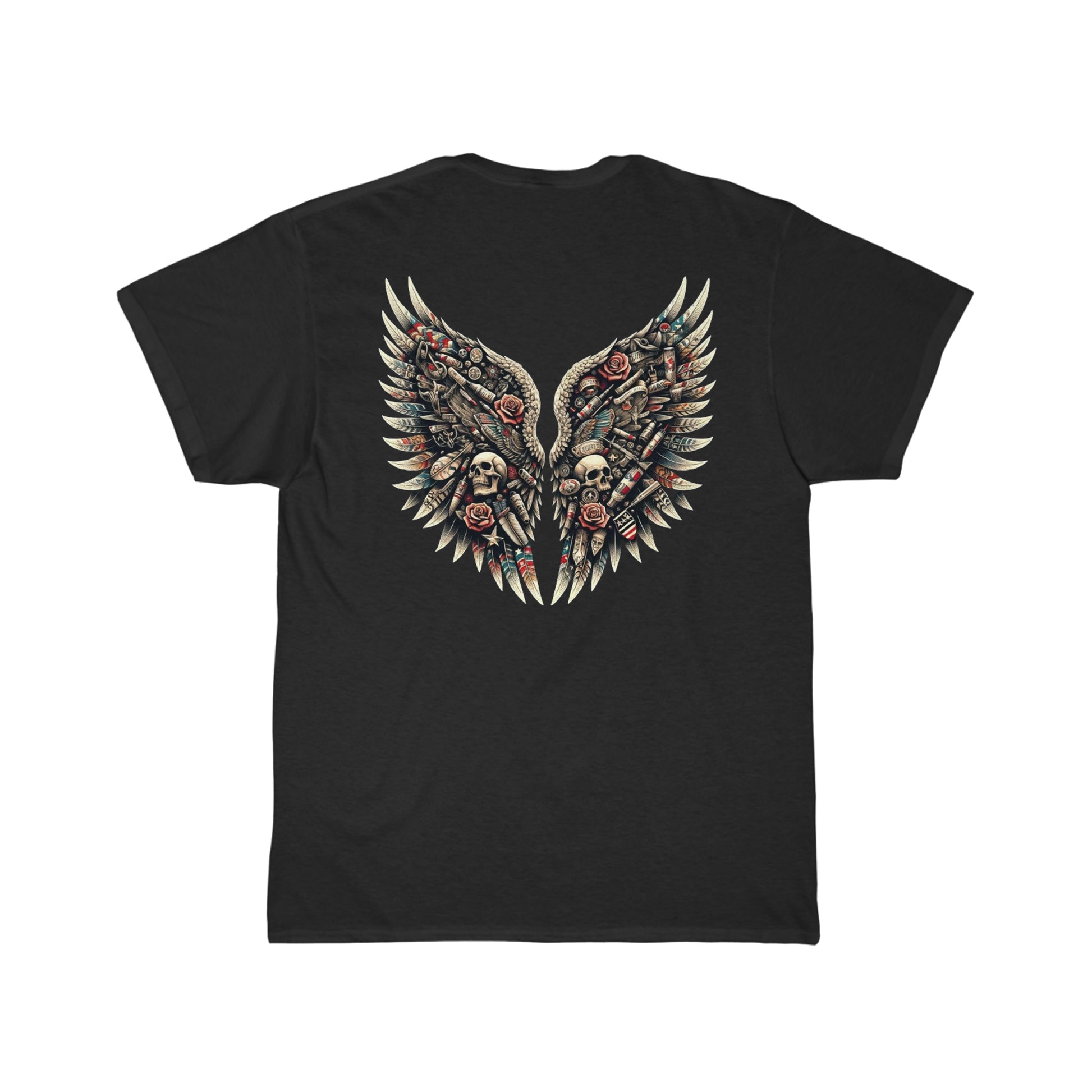 This isn't just any ordinary tee; it's a canvas of freedom, showcasing a set of meticulously designed wings that offer more than meets the eye. With every feather, a story unfurls, encapsulating the essence of adventure, symbols of life, and the undying spirit of liberty.